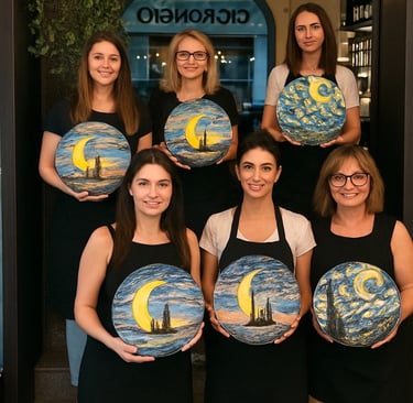 Artful Evening è un workshop di pittura adatto a tutti, ideale per eventi privati e momenti di socializzazione, accompagnato da un delizioso aperitivo o brunch.
